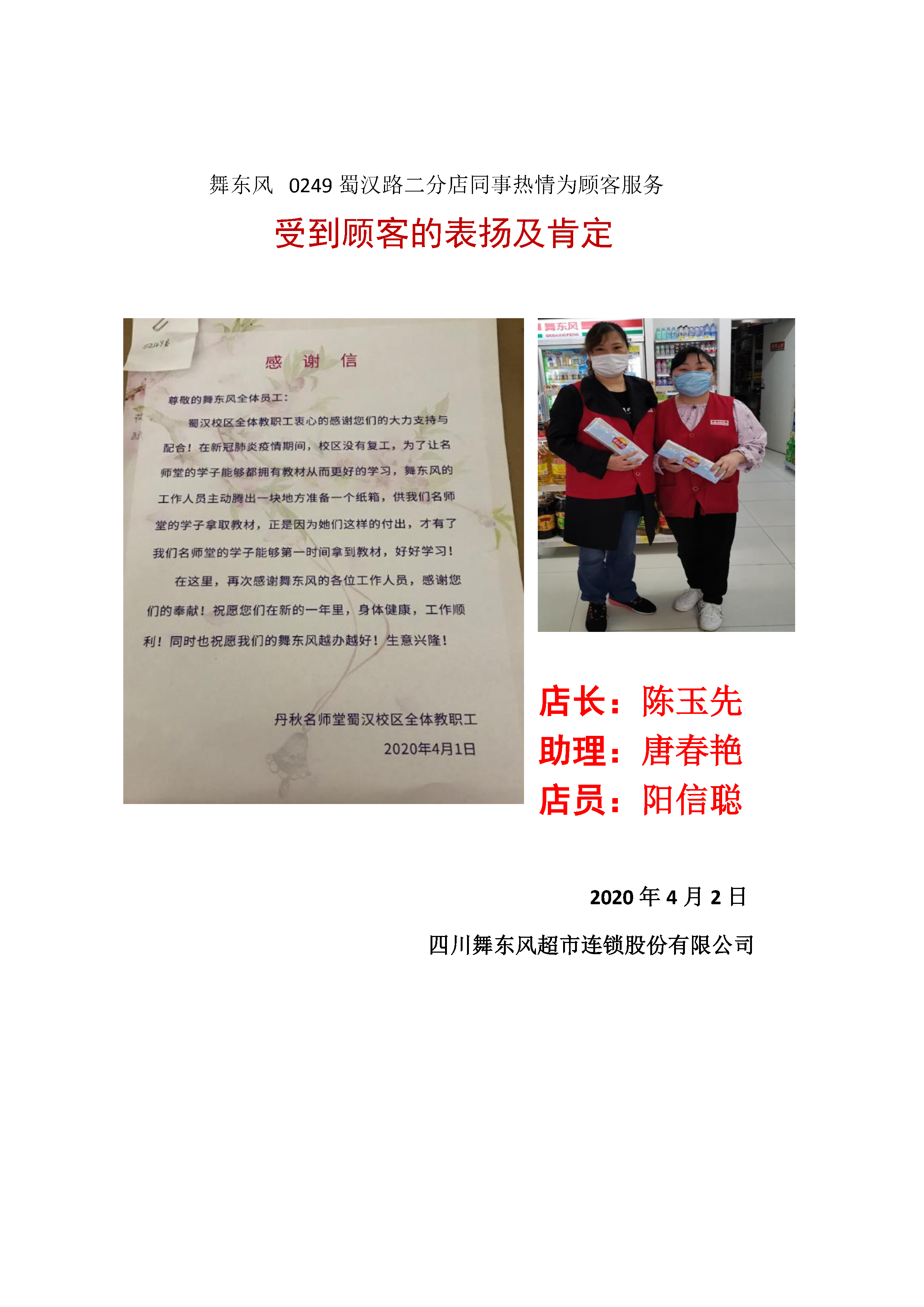 0249分店感谢信
